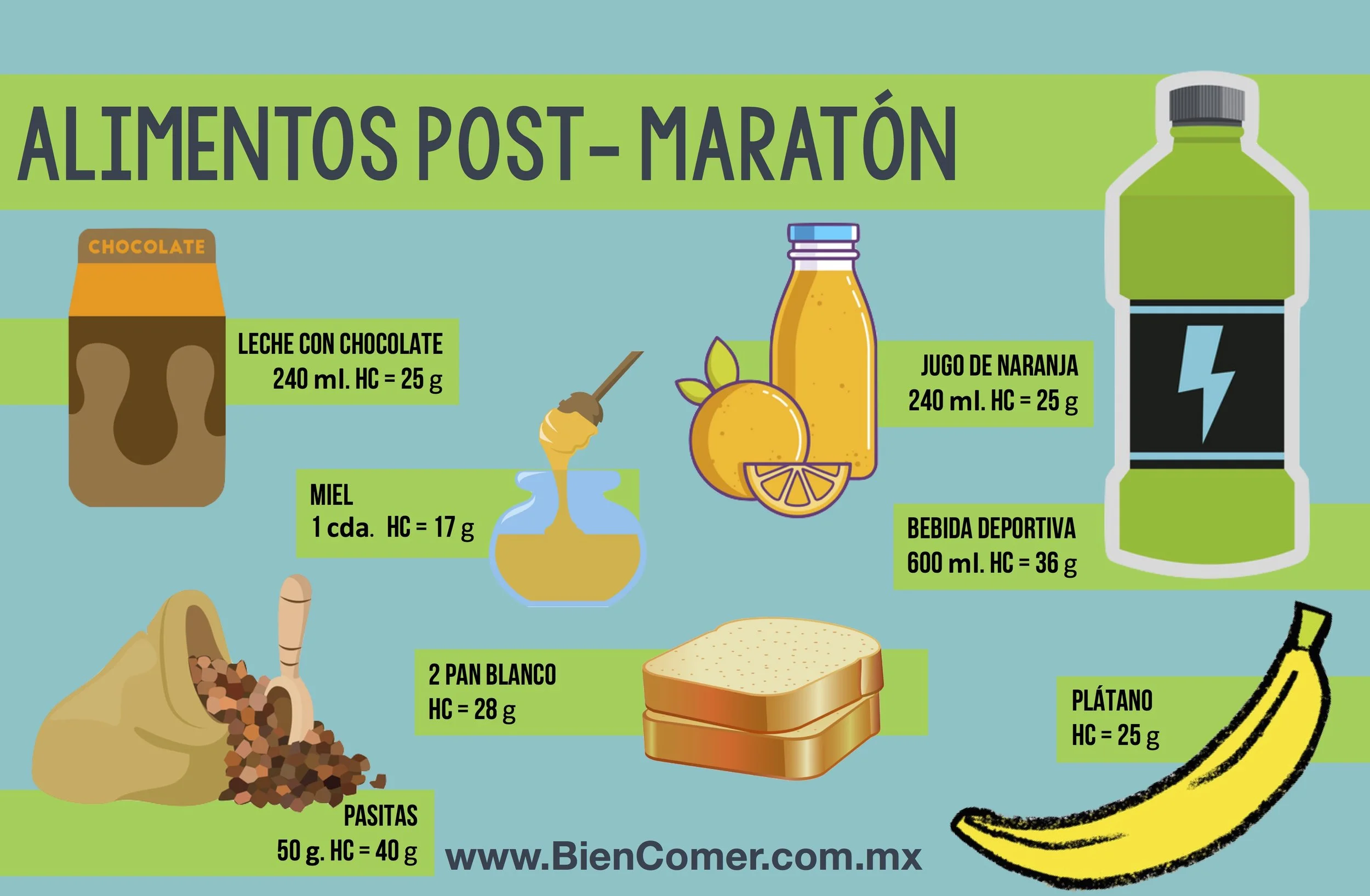 La felicidad de consumir carbohidratos no termina el día del maratón pues durante las siguientes 48 horas deberás seguir comiendo como los previos a la competencia (60- 65% del total de tus calorías).