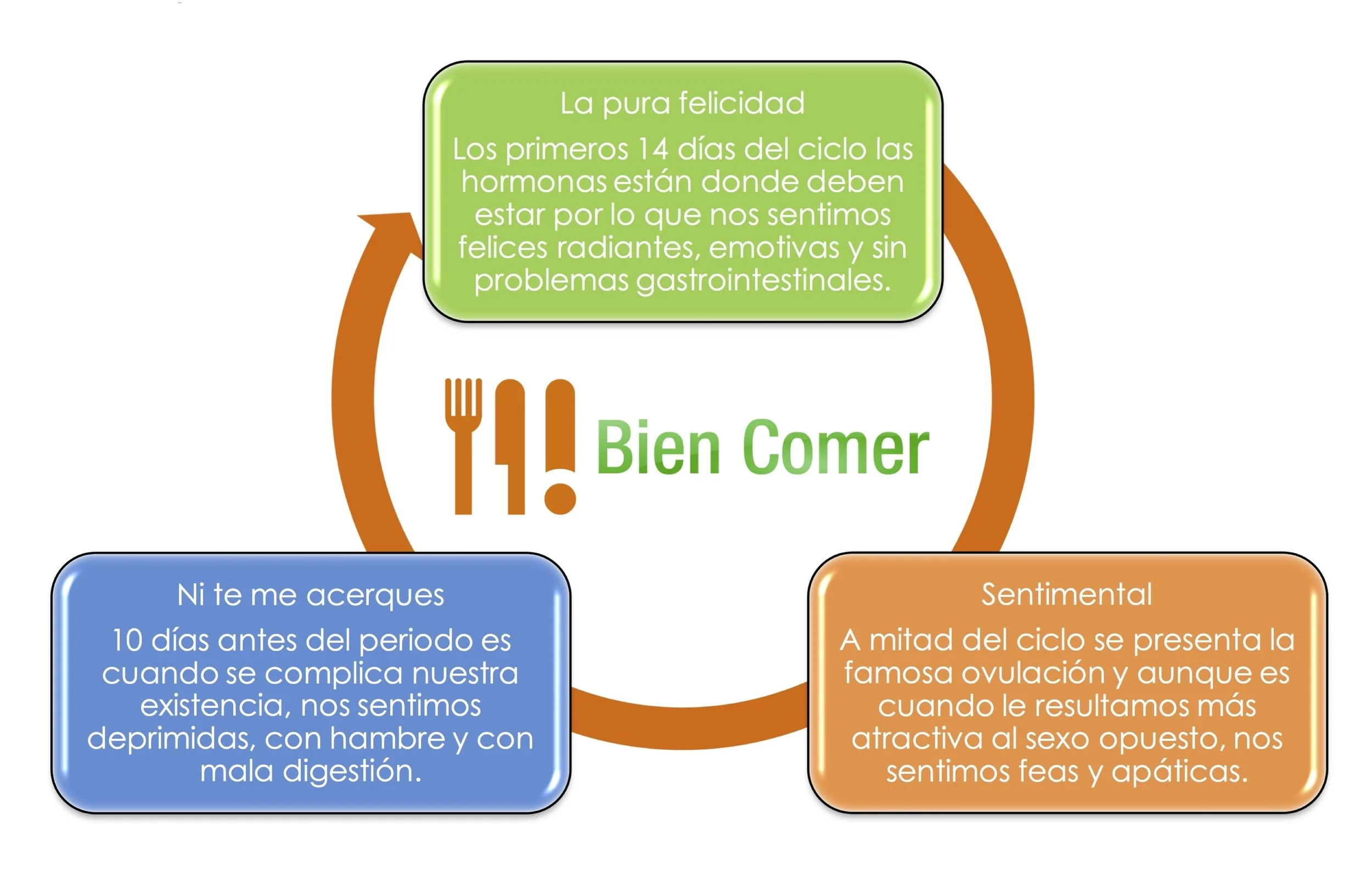 Los ovarios producen progesterona y estrógenos los cuales ejercen efectos sobre la nutrición y fisiología de la mujer en general. A lo largo del ciclo menstrual (que no solo refiere los días de sangrado) la mujer presenta variaciones tanto su composición corporal como en la forma de comer.
