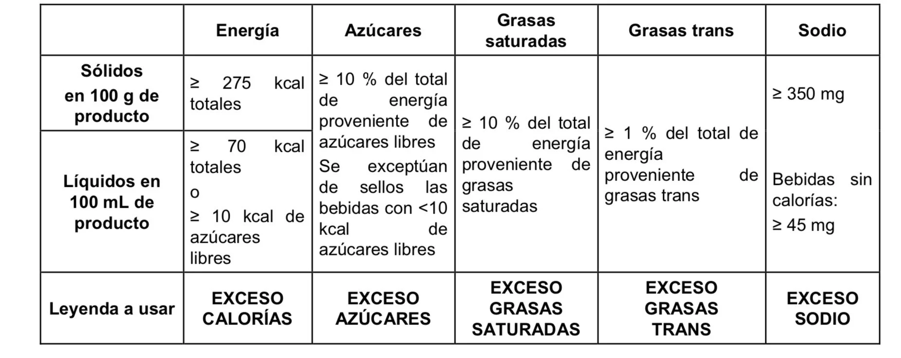 Se trata de un etiquetado con símbolos y textos sencillos para advertir a los consumidores sobre ingredientes cuyo alto consumo es nocivo para la salud: azúcar, grasas saturadas, grasas trans y sodio, así como de la energía total (calorías) con el fin de reducir el consumo de alimentos poco saludables. Este tipo de sellos facilita la comprensión, la toma de decisiones alimentarias al momento de la compra y promueve que la industria haga una reformulación de sus productos, además de ser simple y equitativo para cualquier sector de la población.